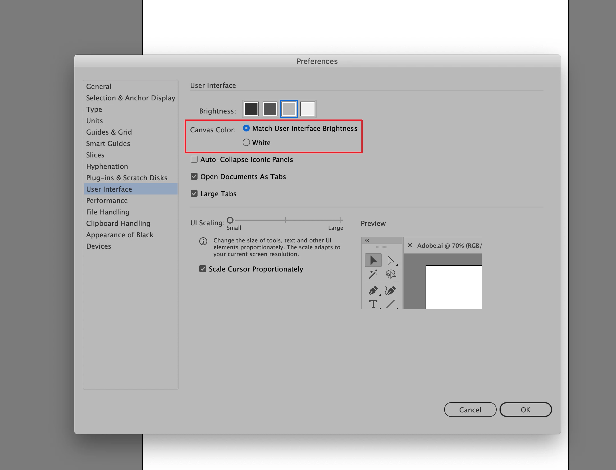 In the User Interface section of Illustrator's preferences choose "Match User Interface Brightness" for your Canvas Color.