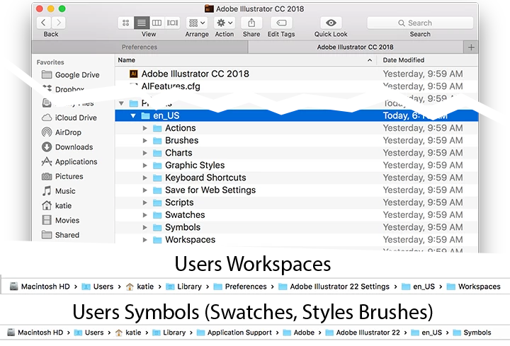 The location for Illustrator CC workspaces is located in applications/Adobe Illustrator CC 2018/Presets/en_GB/Workspaces, but where do the new workspaces go? When you save new workspace it doesn't work and is not located in this folder. Where did it go in CC2018?