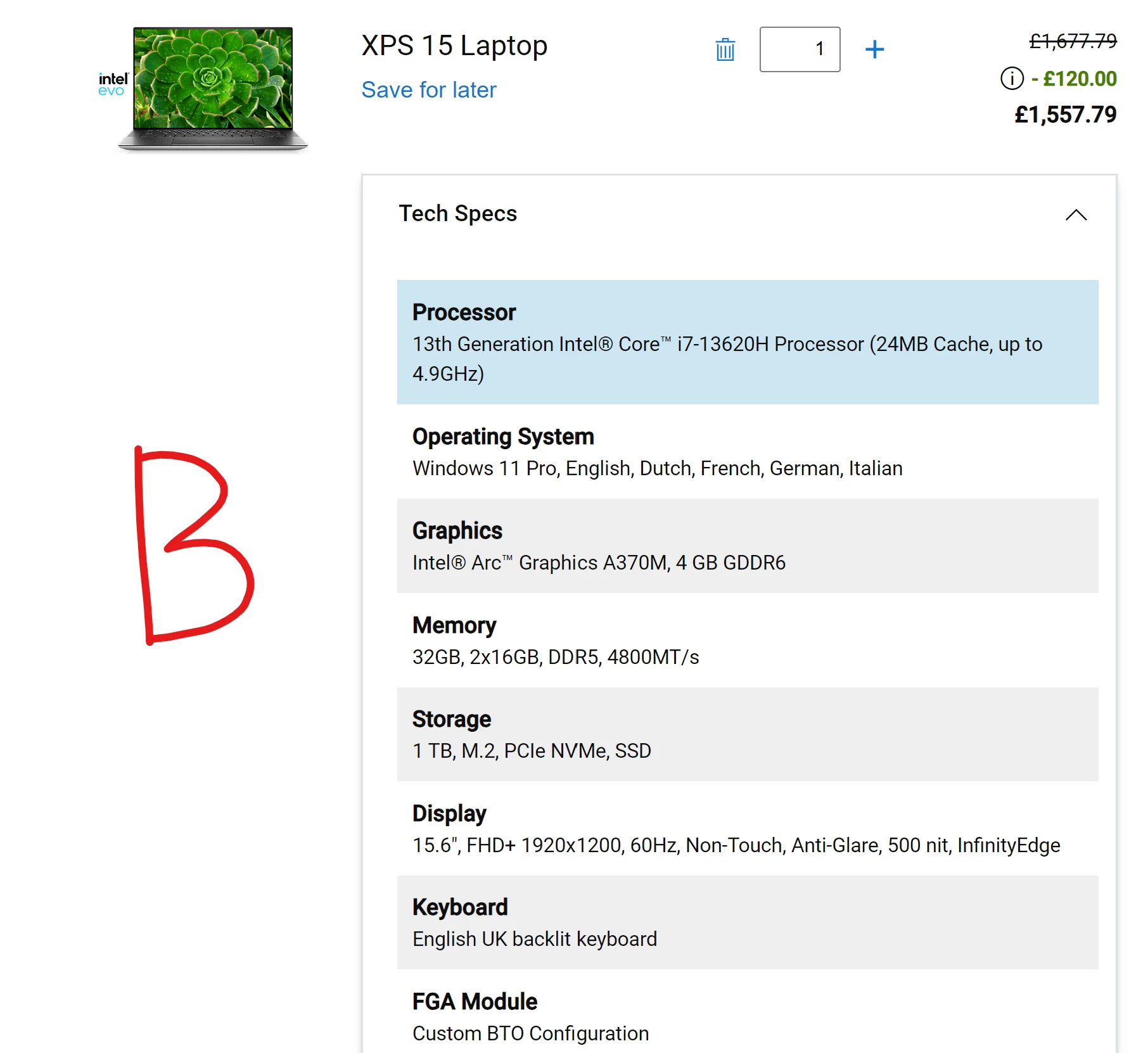 Conscious of RAM(option B has higher spec) and also graphics (option A has higher spec). I heard that given that 3D functionalities are improving having a separate graphic board like NVIDIA® GeForce RTX (option A) is a good shout #confused.com