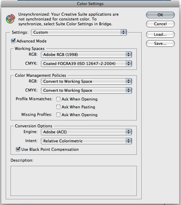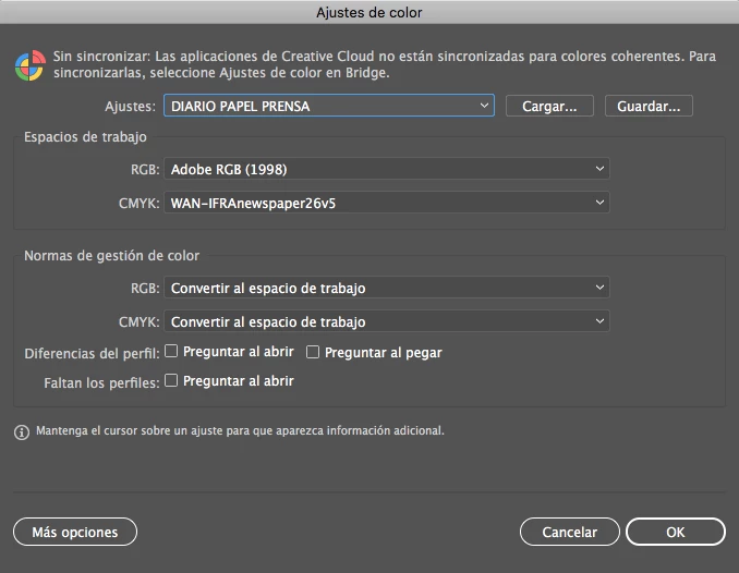 My Color Settings (RGB for web / CMYK for Newspaper)