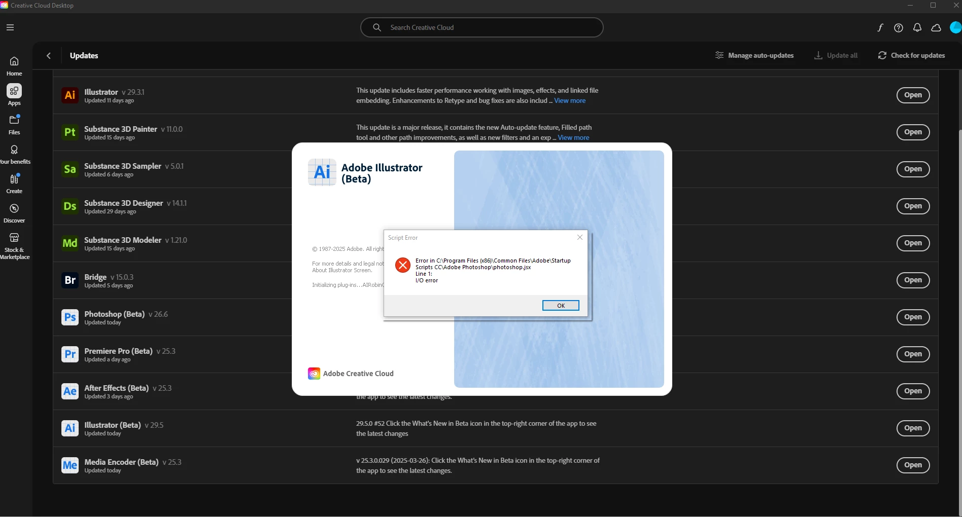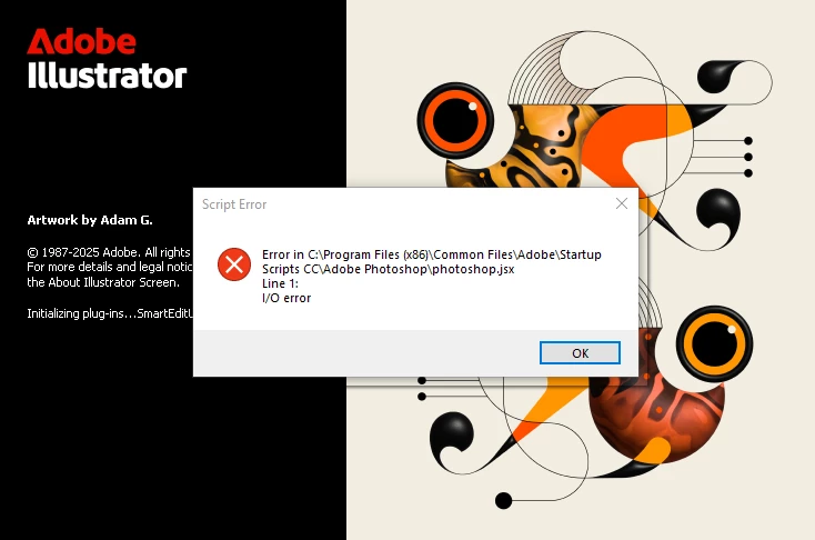 Could you try moving the Startup Scripts CC folder to the desktop and then relaunching Illustrator to see if it helps?