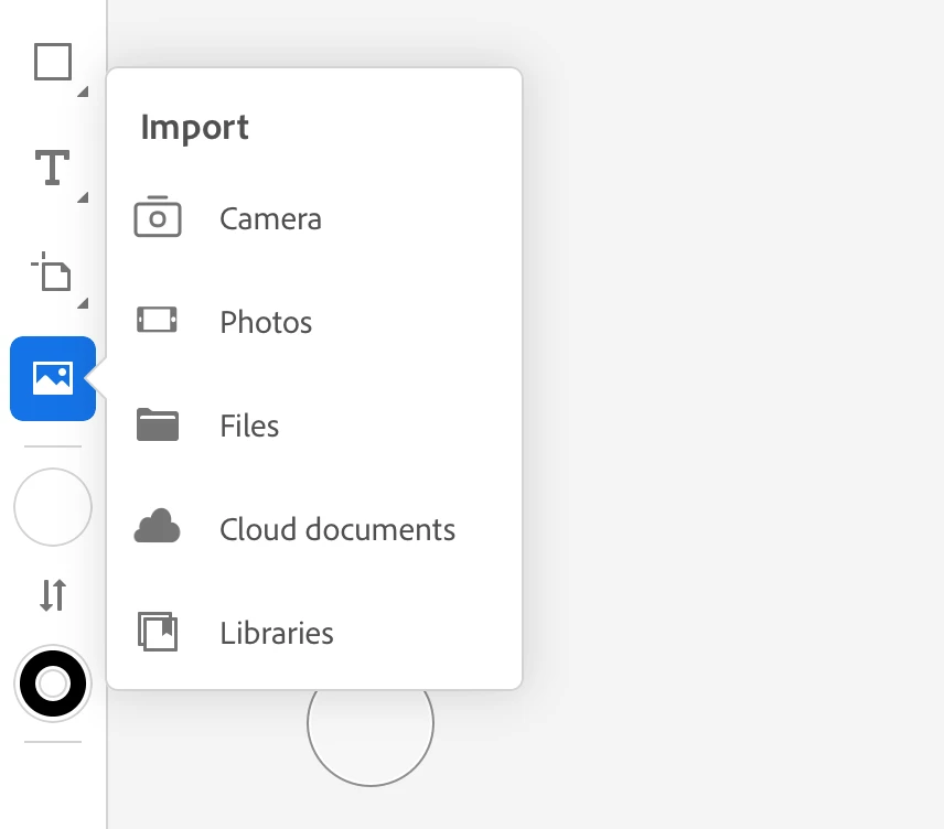 Tap the image icon on the left Toolbar and use any of the following options to import a file: