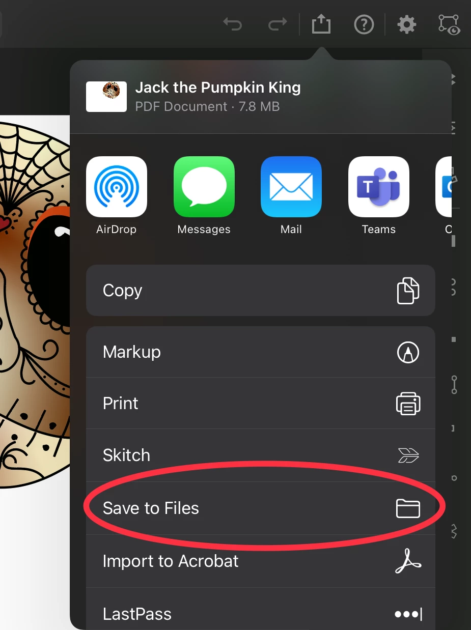 I have created an artwork on my iPad illustrator,exported as png,saved it on iPad,try to save pdf, but doesn't seem to show anywhere on my iPad except inside illustrator.cant download it from cloud either. Does anyone know how to export file to your iPad file folder,or photoes folder so can be used elsewhere?Im getting quiet frustrated,as I would like to use my work,but seems I can only open it in illustrator.