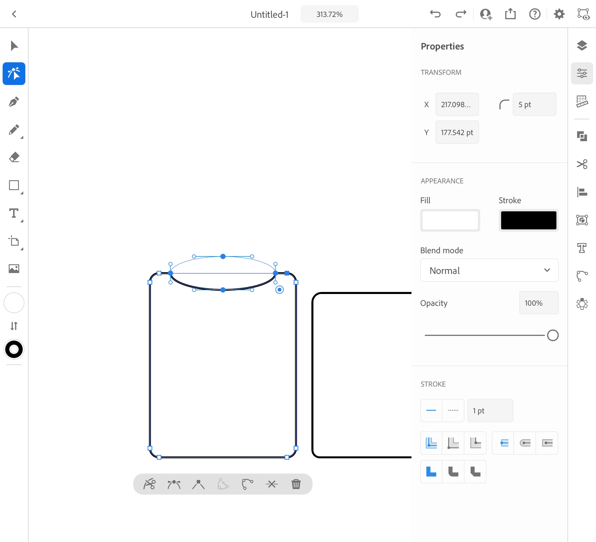 Cannot curve edges when combining shapes on Adobe Illustrator iPad