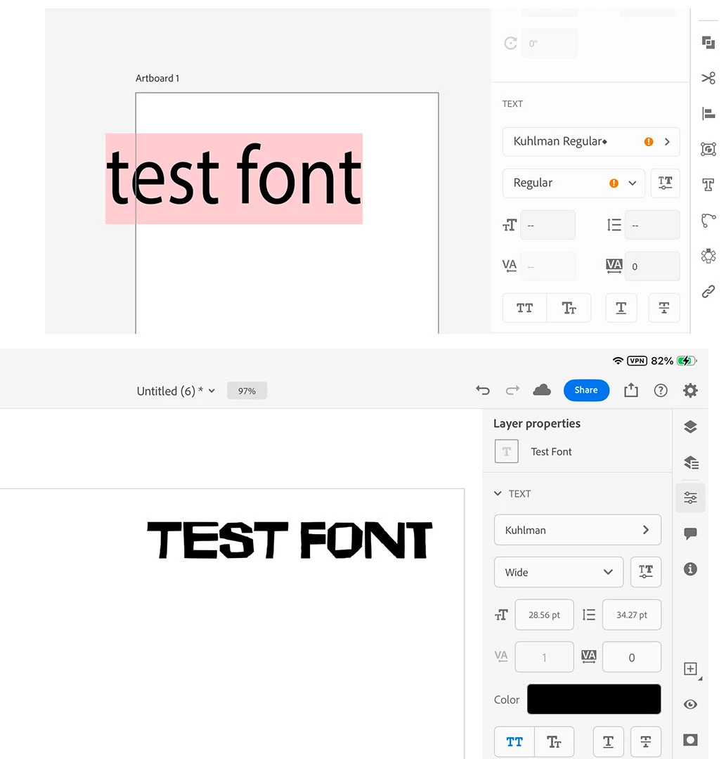 I’m adding fonts to Illustrator iPad using Adobe fonts and I’d say about 1 in 5 don’t work. Most of them add fine, but a few of them, I can see them on Desktop Illustrator, I can see them in Photoshop iPad, but Illustrator iPad for some reason doesn’t work.