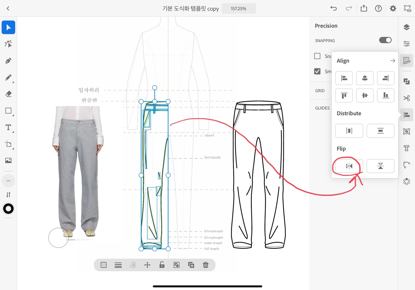 On the desktop, you use the reflect tool to reflect based on the reference poin