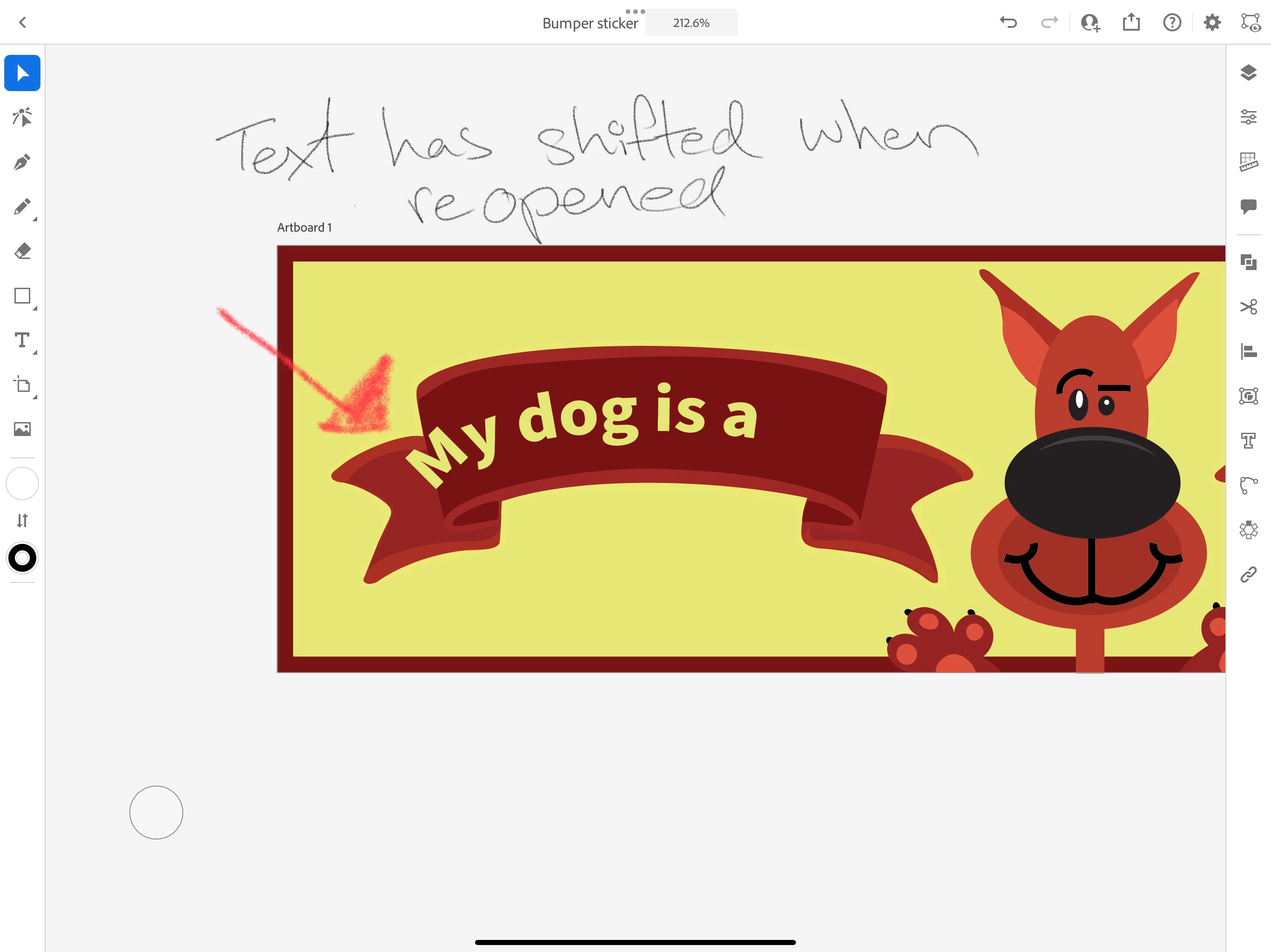 Illustrator on IPad Pro, Text doesn’t stay put