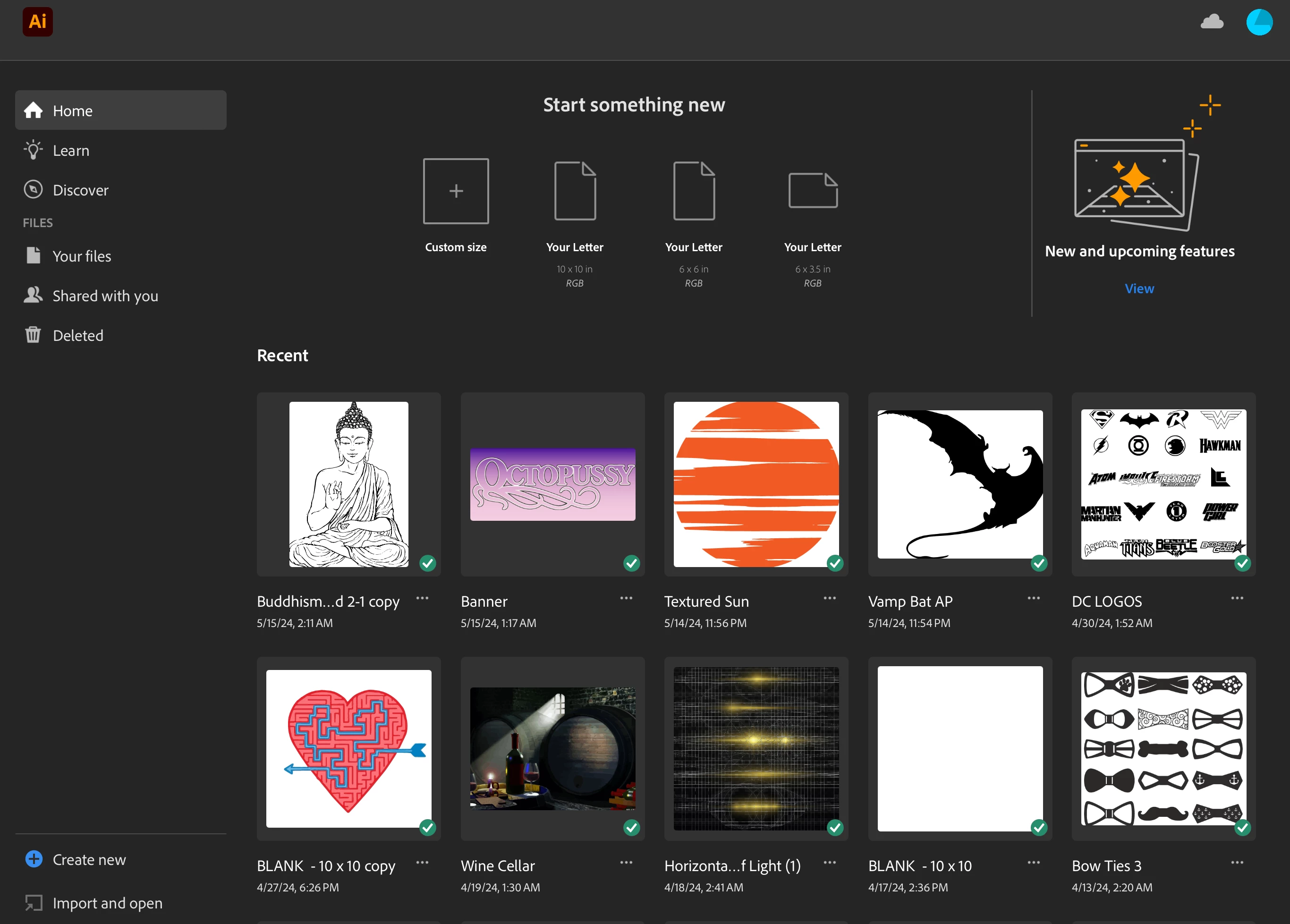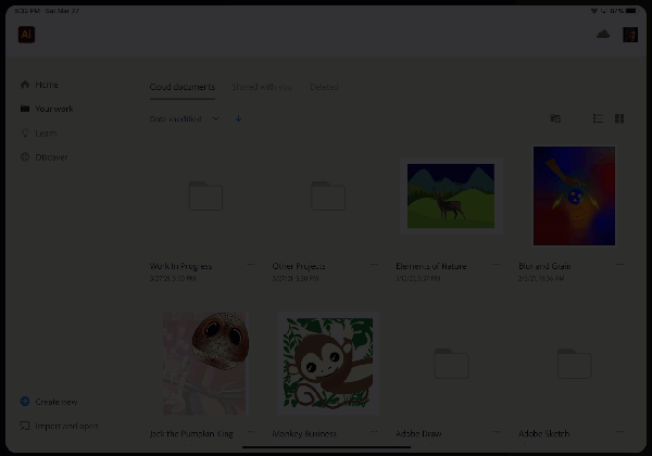 You can do this within Illustrator on iPad by tapping "Your Work" in the upper left of the view of the home screen.