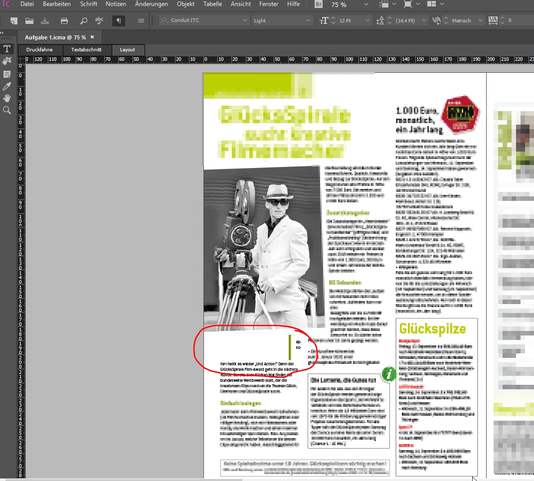 fehlerhafte darstellung in der Layoutansicht bei InCopy