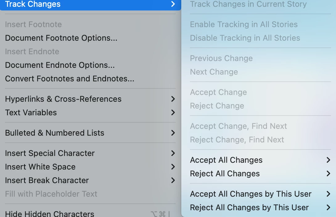 Help with InCopy/InDesign Track Changes