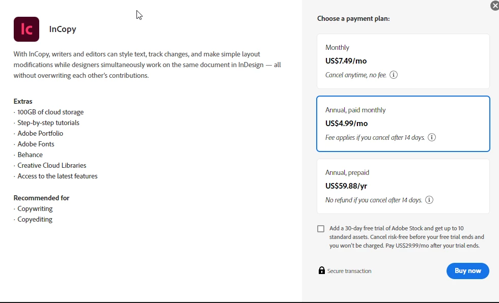I see that InCopy has the cheapest subscription of all the Adobe products.