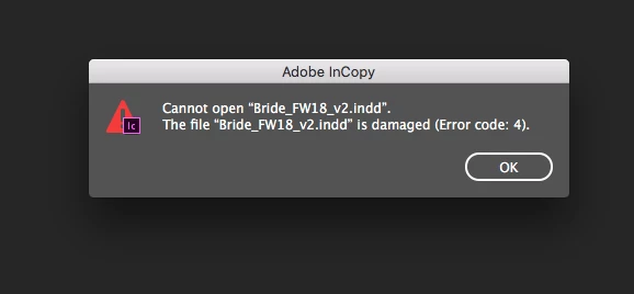 InCopy damaging files