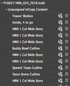 When I import an InCopy document into InDesign, sometimes it shows up in the assignments panel with the file name ("City Hall"), but sometimes it shows up with the InCopy template name ("1 Col Story") from which it was created.