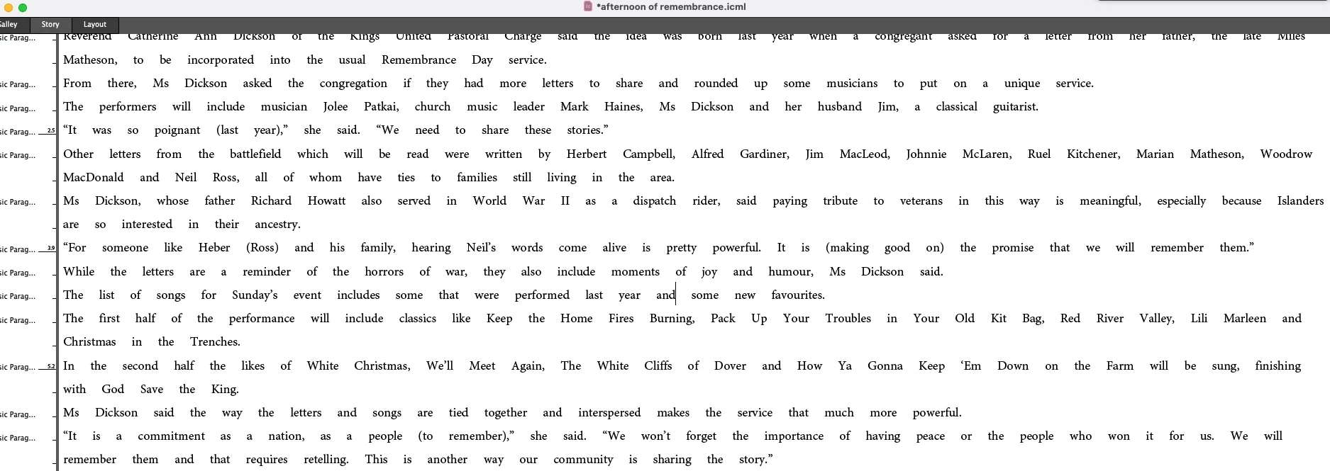 InCopy is showing text all spaced out and it hides almost all of it unless you scroll down, when the rest magically appears. I've tried updating InCopy, restarting my Mac and even deleting InCopy preferences but none of it worked. The only view that shows it even close to normal is galley, but even then it has one line on the first page and the rest of it on another page. Screenshots attached.