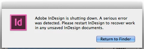 InDesign shuts down...A serious error was detected.