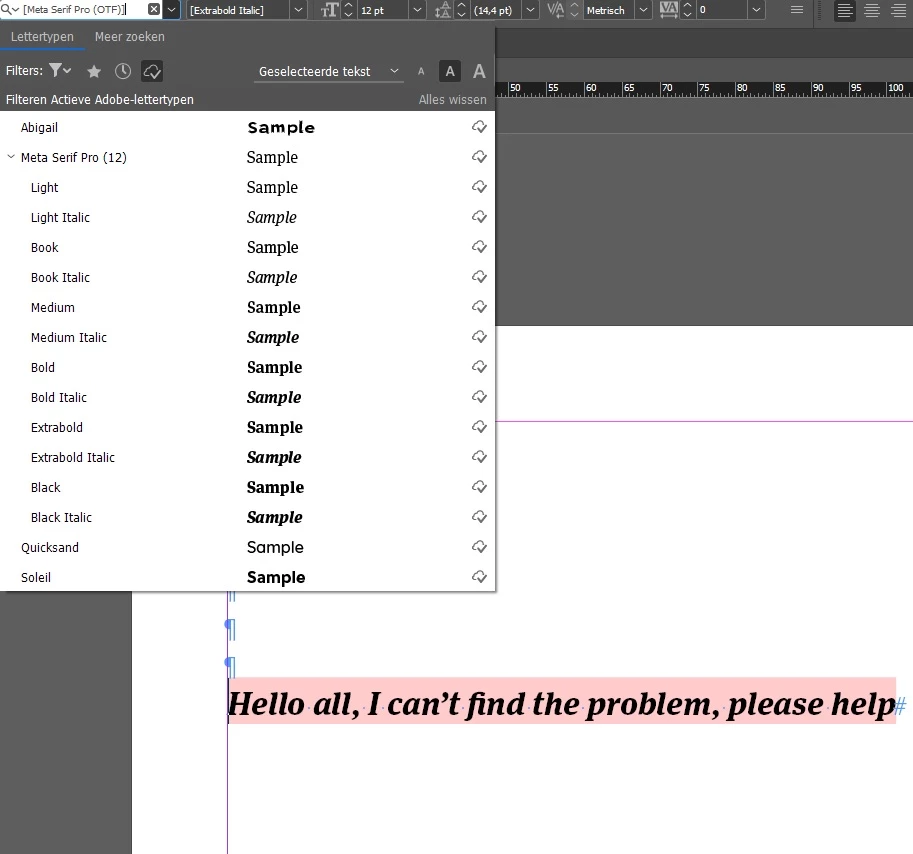 I have a strange problem: I've installed and activated a certain font, Meta Serif Pro, using Adobe Creative Cloud Fonts and I want to use it. I see the font, I can use it in InDesign, but when I want to use it with InCopy, the font is in brackets eand the text is pink, meaning the font can't be found. This is extra weird because I can litterally see the font in the drop-down menu in InCopy, as well as all the font-types (Itallic, Bold, etc.)