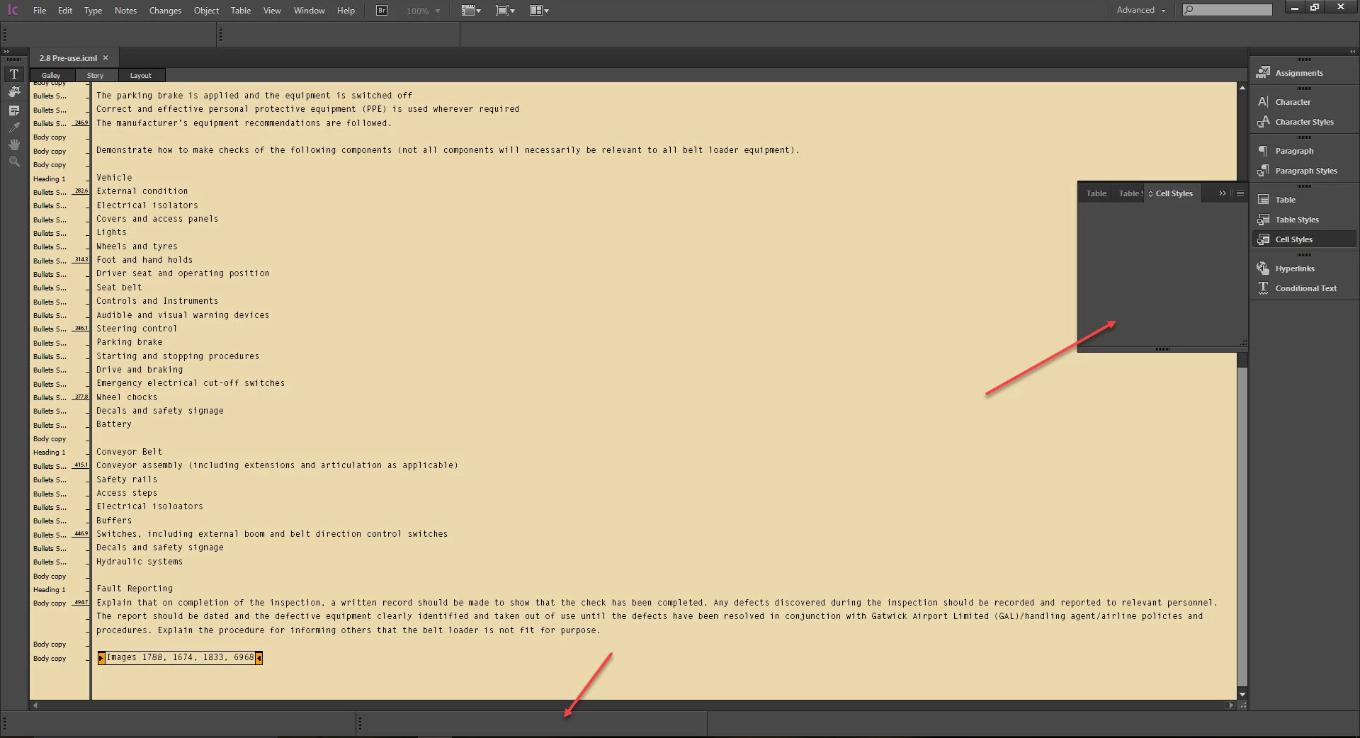 I've been having an ongoing problem with InCopy that is steadily getting worse. It started when I lost the 'Gallery and Story Appearance' bar at the bottom of the screen. Although, 'lost' is the wrong word, it's still there, it's just a blank panel. The same problem has now afflicted the Paragraph Styles and Table Cell Styles panels. They are still there but information is not showing.