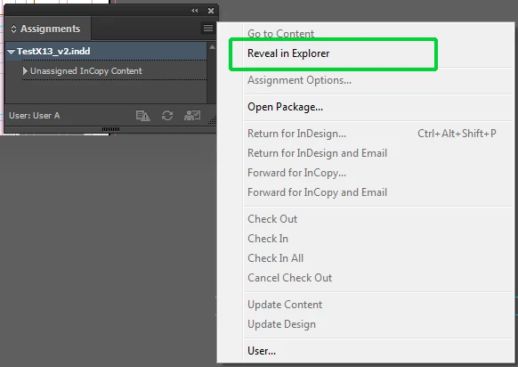 Is there a "Reveal in Explorer" option (or similar) in InCopy?