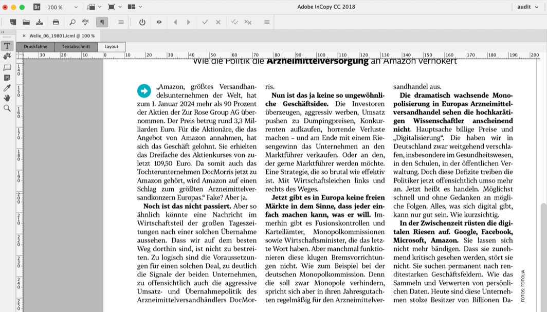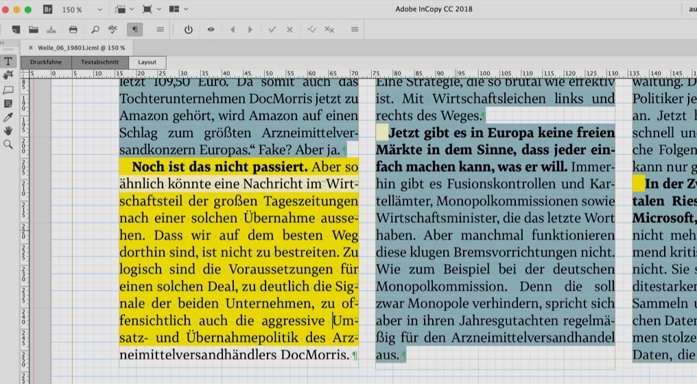 Text sections are wrapped differently in InDesign and inCopy.