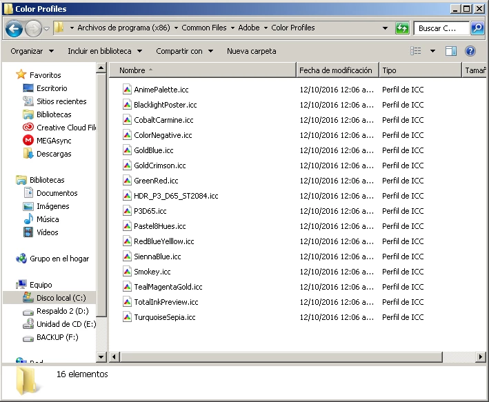 In this folder there are 16 profiles C: \ Program Files (x86) \ Common Files \ Adobe \ Color Profiles