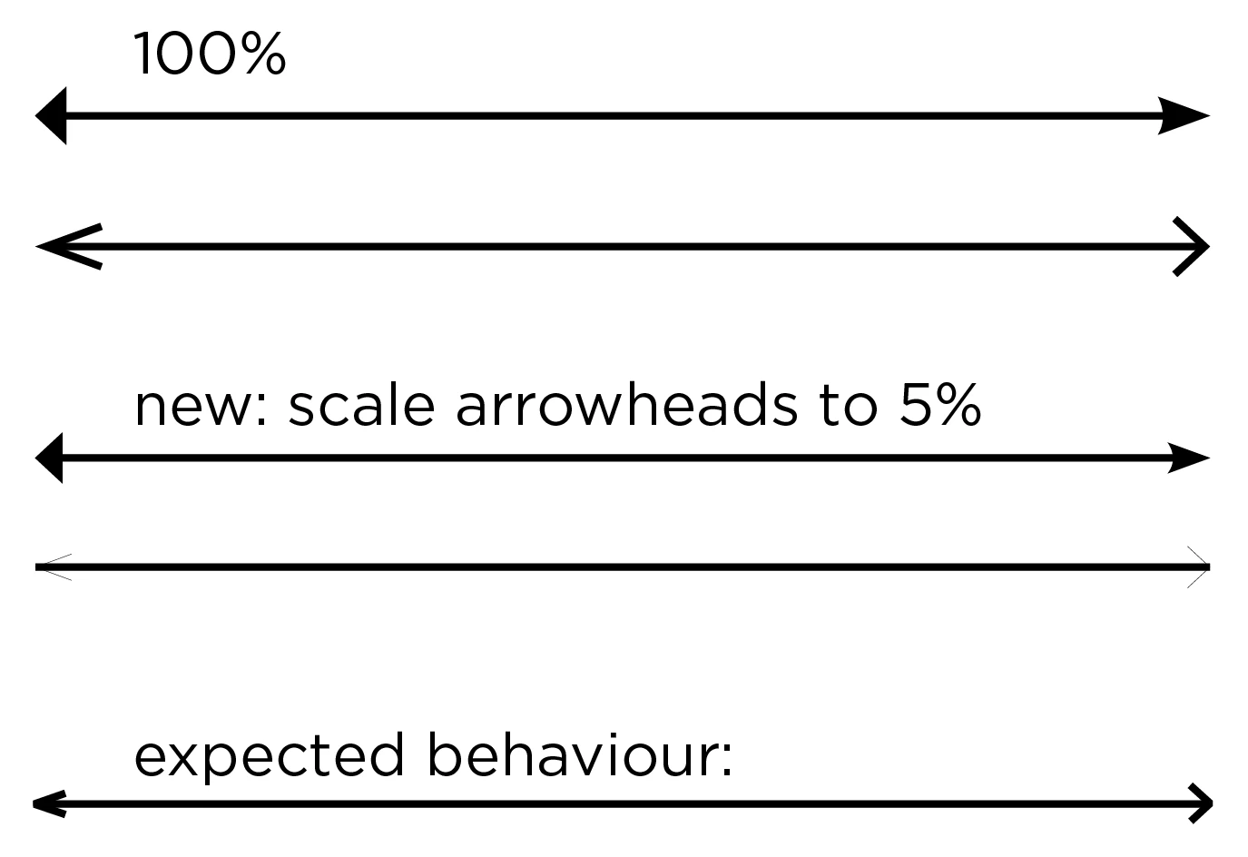 But: only the filled arrowheads seem to be usable: when I resize an open arrowhead the line the arrowheads consists of is scaled down too; and that is something you would not want to happen: see image
