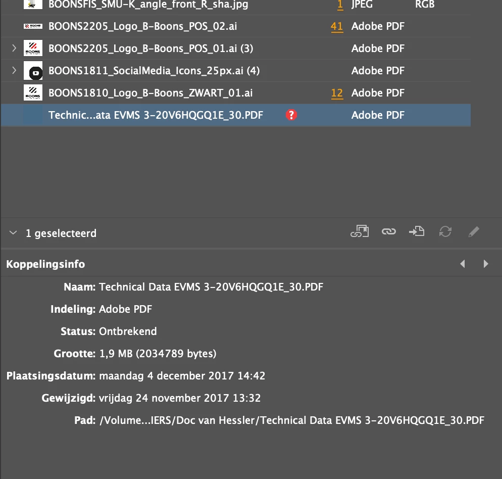A pdf document is marked as missing in the 'links' pane but is nowhere to be found in the InDesign document. Not on master pages, no hidden layers, ... Re-linking also fails. Does anyone know how I can remove this linked item from the links pane?