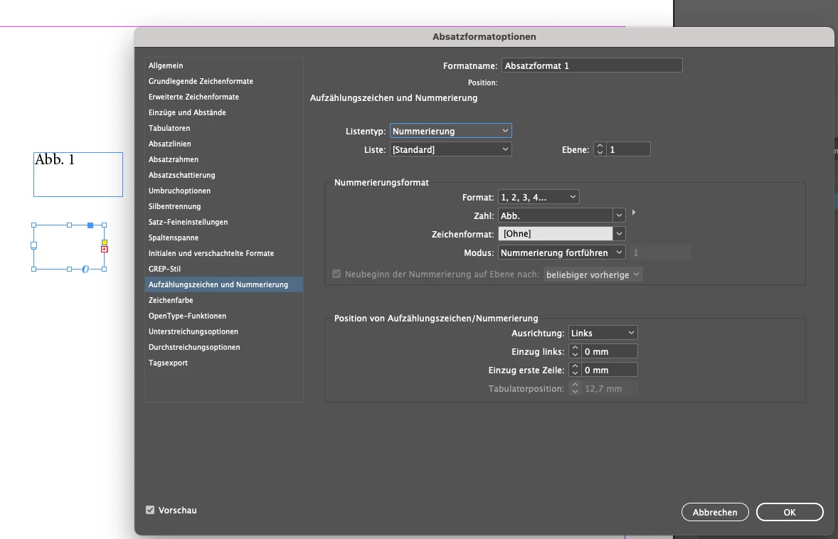 Erstellt man in InDesign 18.0 ein Textfeld und legt dafür ein Absatzformat - Aufzählungszeichen und Nummerierung fest, verschwindet der Text sobald man das Textfeld etwas verkleinert.