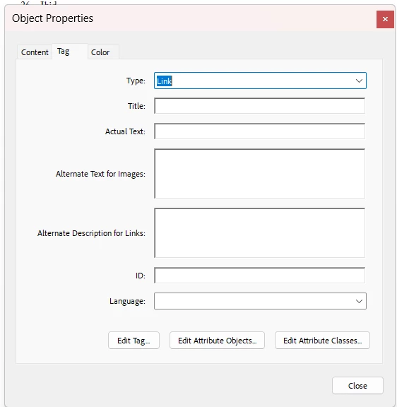 I guess, first and foremost, what might I do to resolve 1), where there is currently no "ID" listed in the properties of the "Link" tag. If I can fix this, at least our books will have a chance of meeting minimum accessibility requirements.