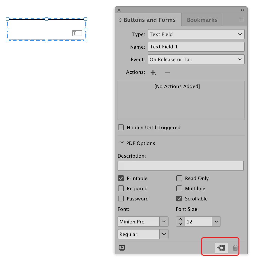 Click on the Form Field to select it. Then click on the Convert to Object button at the bottom of the Button and Forms panel.