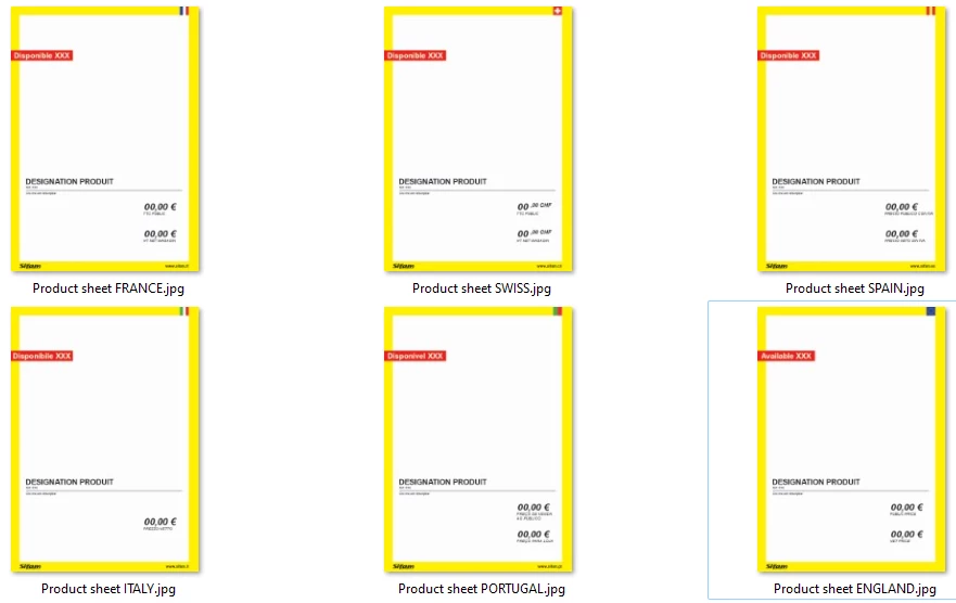my goal is to have this documents which finish with "product sheet FRANCE", "product sheet SWISS",... when I save. without my intervention. like this:
