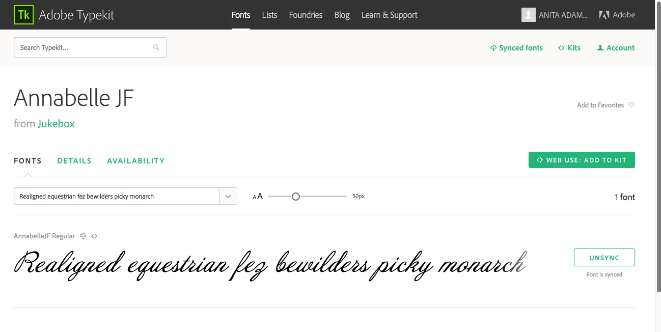 Can't figure out what to fix. It's sync'ed as shown in screen shot below, just don't see it in my ID CC 2017 available fonts. Alternately, if it's even do-able, does anyone download fonts and load them through Font Book?