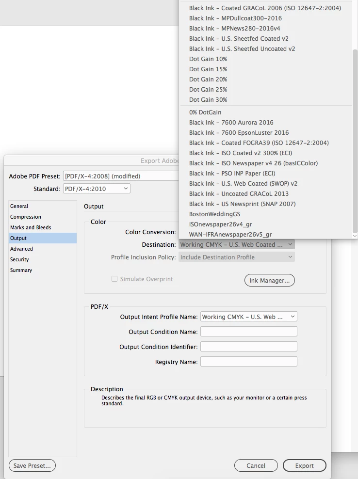 I recently rebuilt a QuarkXPress document I'd used for years in InDesign. This is a document that is output in black-and-white for the print version, and color for the online PDF version. I seem unable to output a PDF as greyscale to see how a "standard" conversion might look, something I could do easily in Quark (v. 9 even). I saw one post indicating three or four profiles at the bottom of the list, but I don't have them. There are no greyscale profiles available to me in my color settings. Where can I find them or how can I add them, so I can output a greyscale PDF?