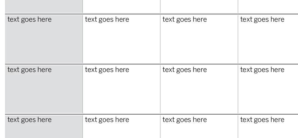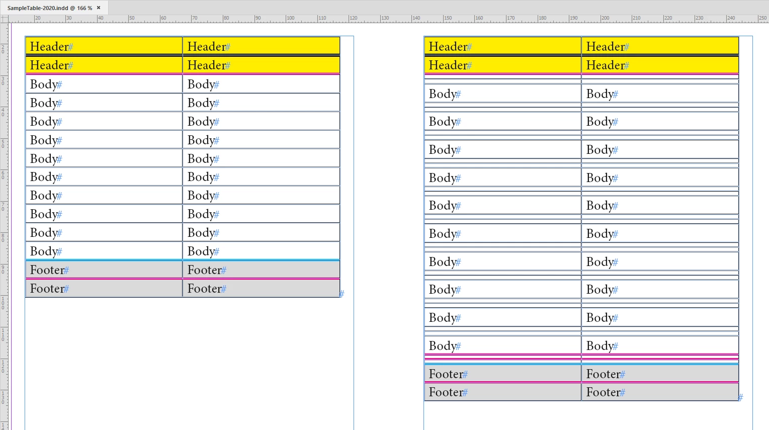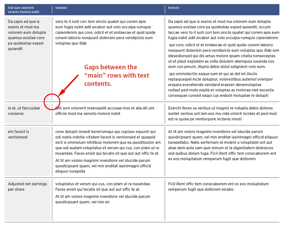 I'm having trouble modifying a table. I need to add 2 rows between each existing body rows to get the look of the table right. Here's what it's supposed to look like.