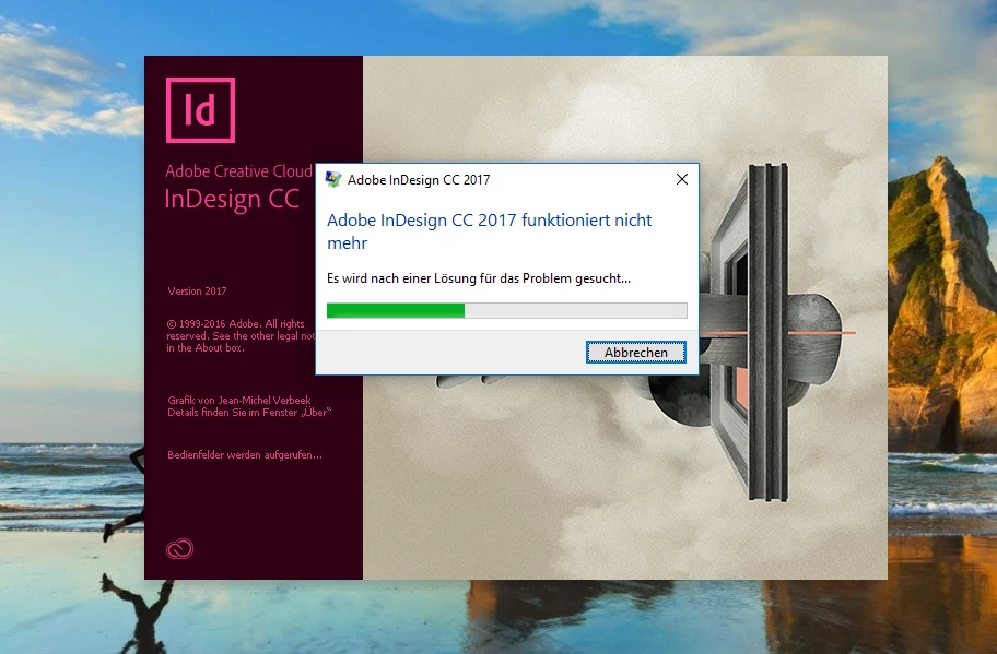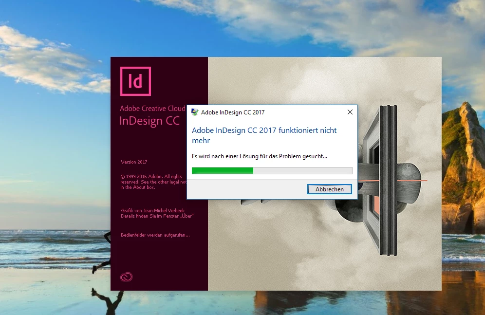 Wenn ich InDesign starten möchte, kommt die Fehlermeldung "Adobe InDesign funktioniert nicht mehr". Neuinstallation etc. hilft alles nicht.