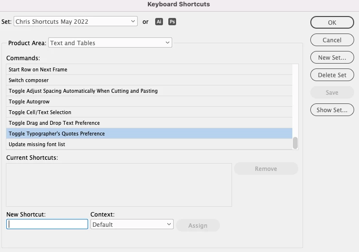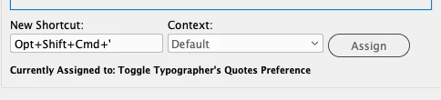 I got a new Studio Mac and, although I can assign the keyboard shortcut, Opt+Shift+Cmd+’ , in InDesign, it won’t work when I go to use it.