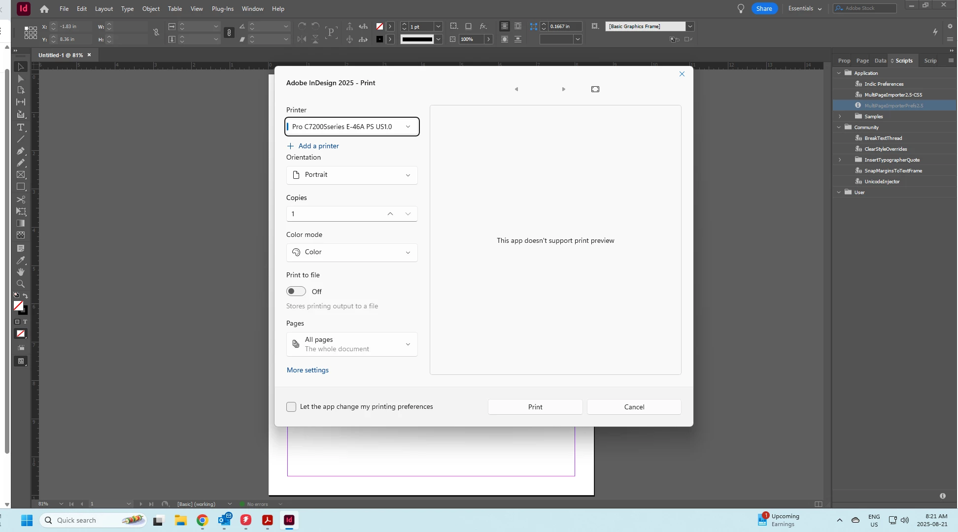 Adobe Printer options