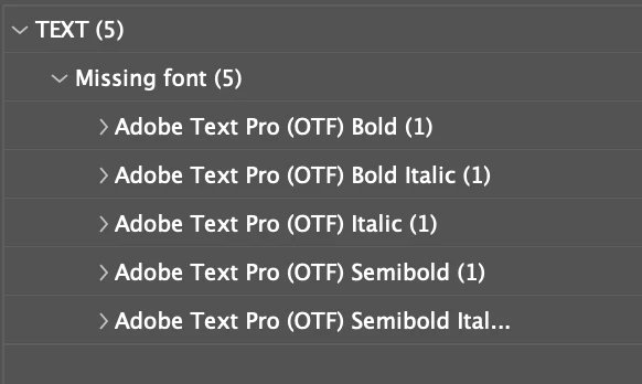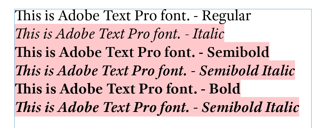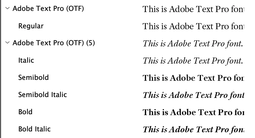 The Adobe Text font family is divided into two groups – 'Regular' and 'Other styles' – and this issue only occurs in InDesign.