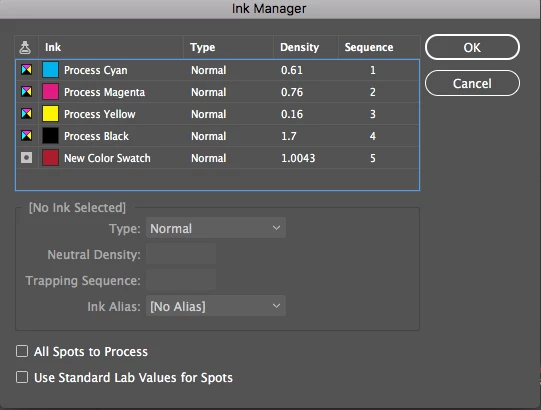 Yes, sorry, I wasn't clear enough. It is in Ink Manager with the option of all spots to color is grayed out.