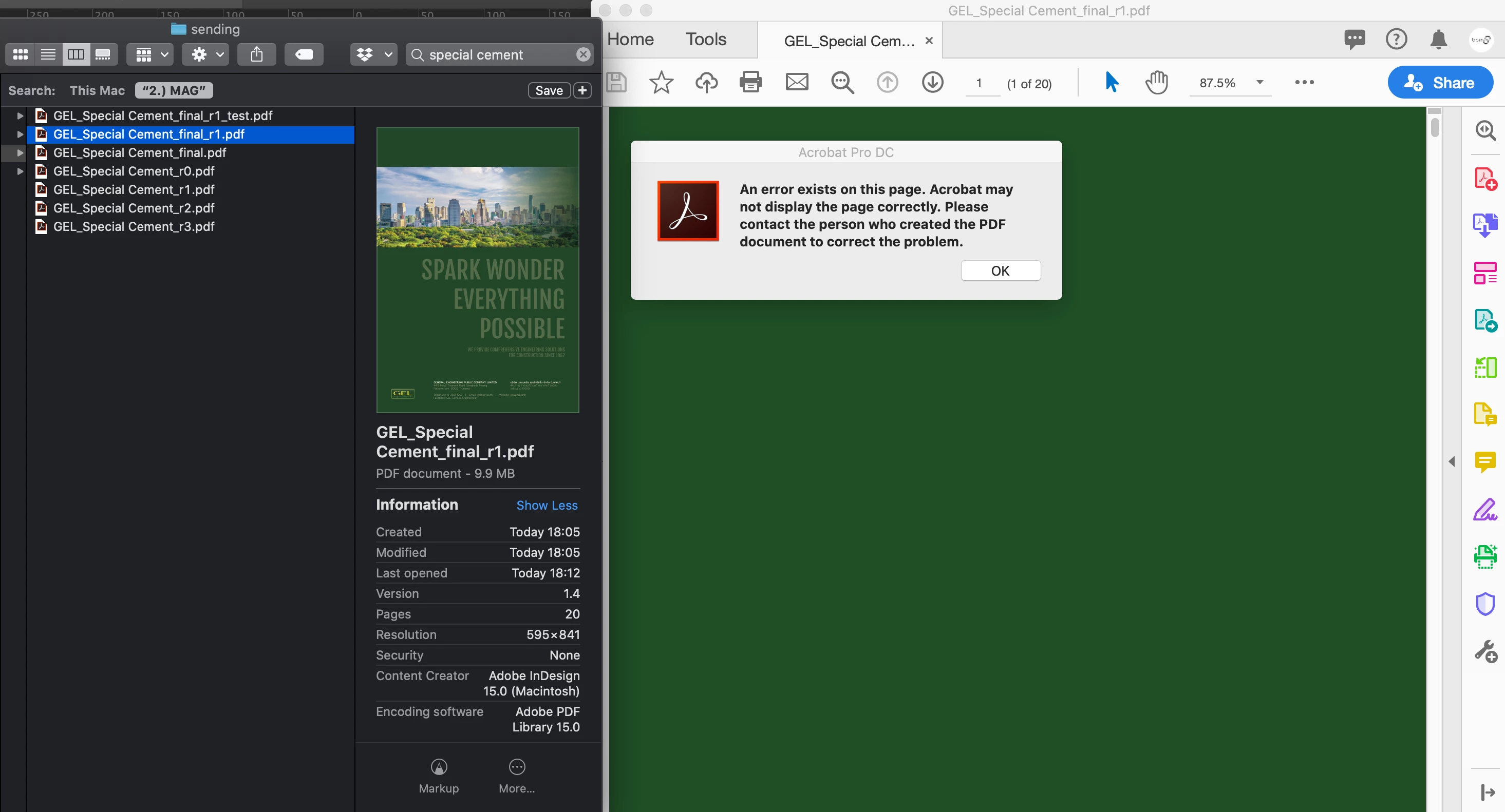 "An error exists on this page. Acrobat may not display page correctly" when create PDF from Id 15.0