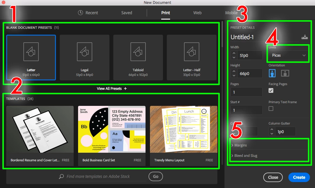 The new dialog box for New Documents in InDesign is horrendous. It's clearly a push to get people to see that Adobe Stock has templates for InDesign that you can purchase. I know the reasons why - you want more sales!
