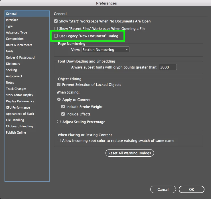 General: Use Legacy "New Document" dialog