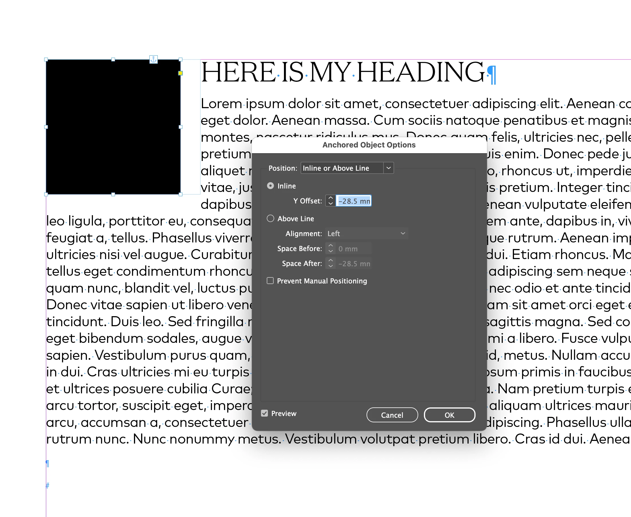 Another option is a 2 cell table with no stroke or insets - and put the image in the cell on the left and the text on the right.