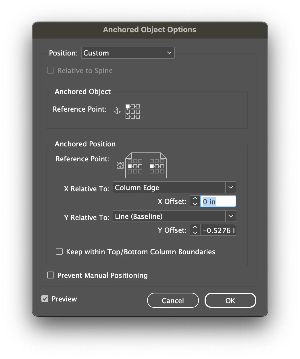 Yeh it has to be anchored to the line above - it can't be anchored in the same line.