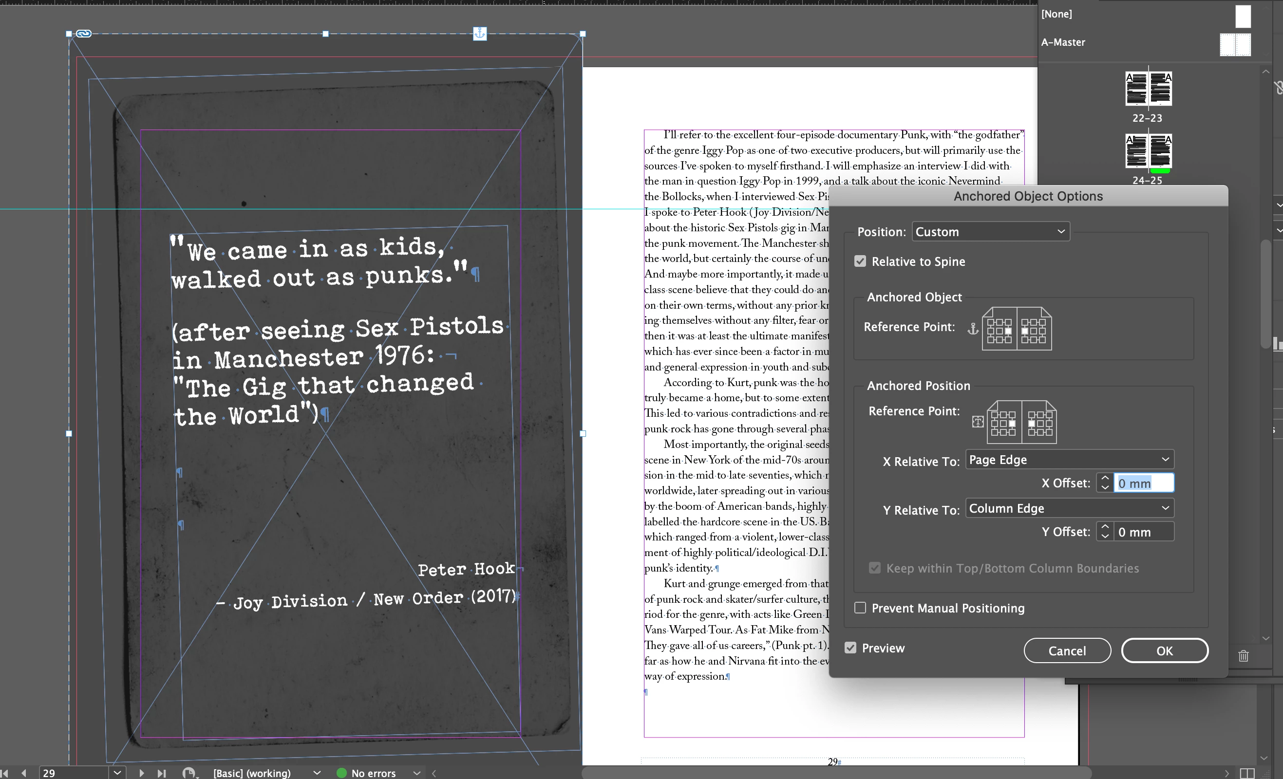 I am setting up a book, where i want to anchor some objects to the text. I need to do the custom setting as it shall not align with the text but fill out a whole page. I have put textwrap on the group that is to be anchored. But it is hiding the text above the point where i anchored it in the text.
