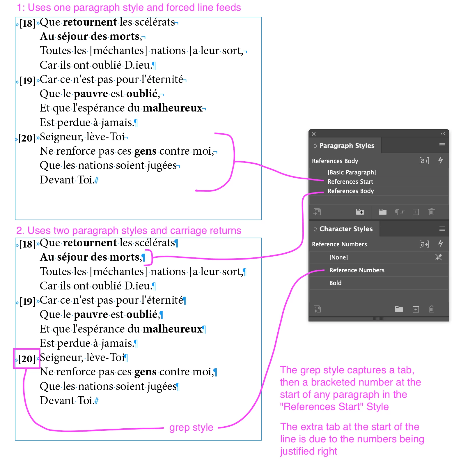 Anchored side notes for bracketed numbers