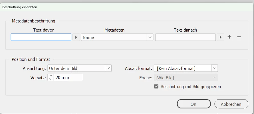 But when I delete a blank page somewhere in the document, it moves the captions away from their photos following that page I've deleted. I googled solutiosn and it said to group the photos with their captions but InDesign won't let me select a photo and its caption and group them. It will allow me only to select one or the other.
