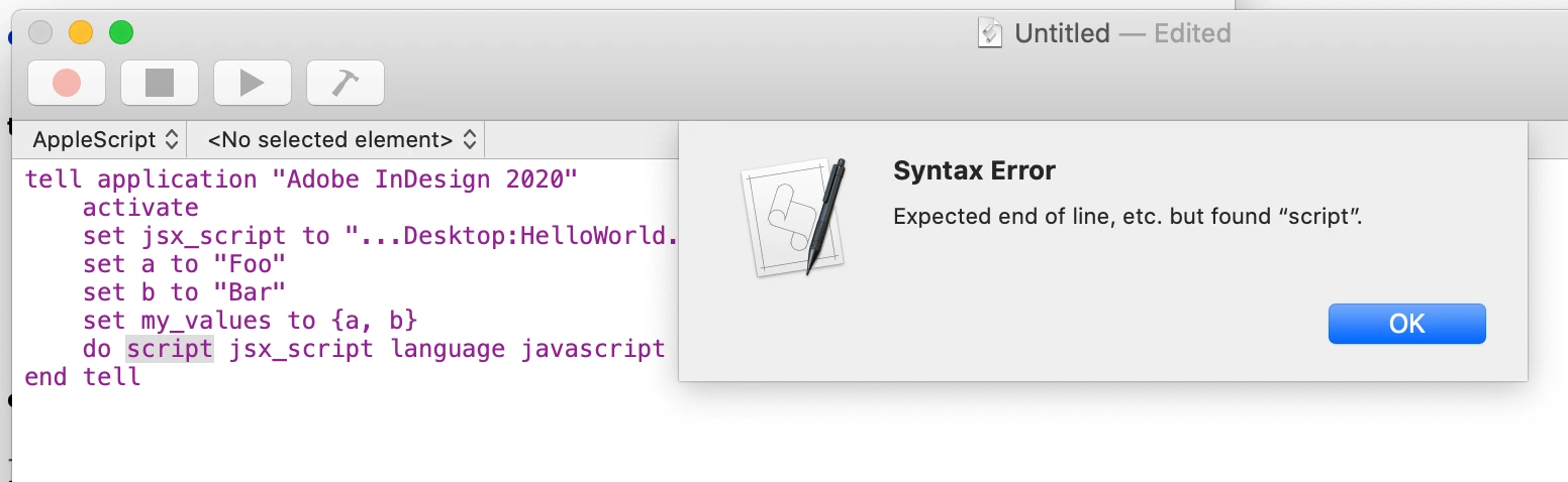 I'm trying to launch Javascript/ExtendScript from AppleScript in recent InDesign using "do script" command. Is that still possible? I'm getting errors as if the command is no longer valid