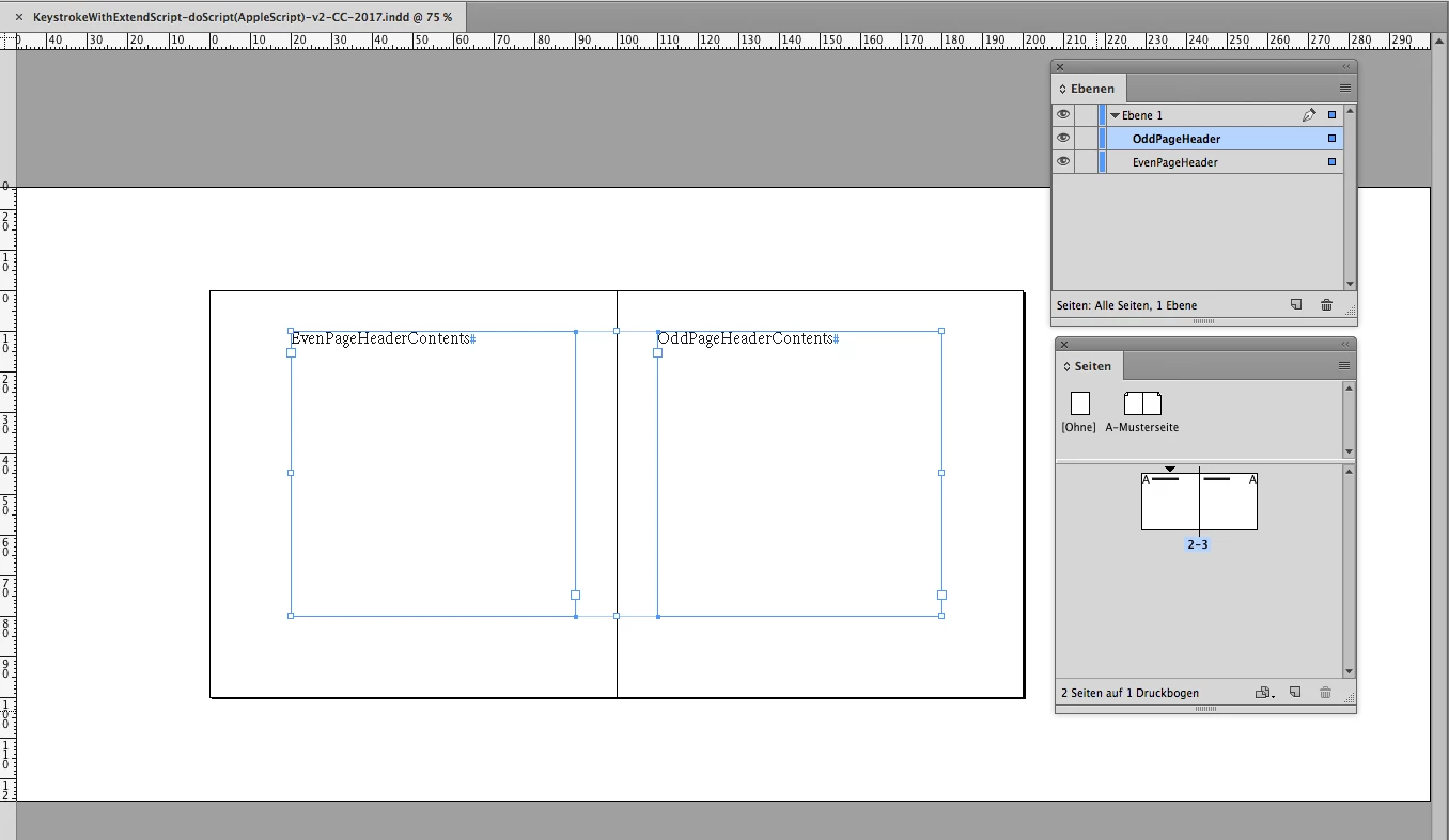 // Select the text within a frame labled "Even Page Header" in the Layers Pallette, then run the Function