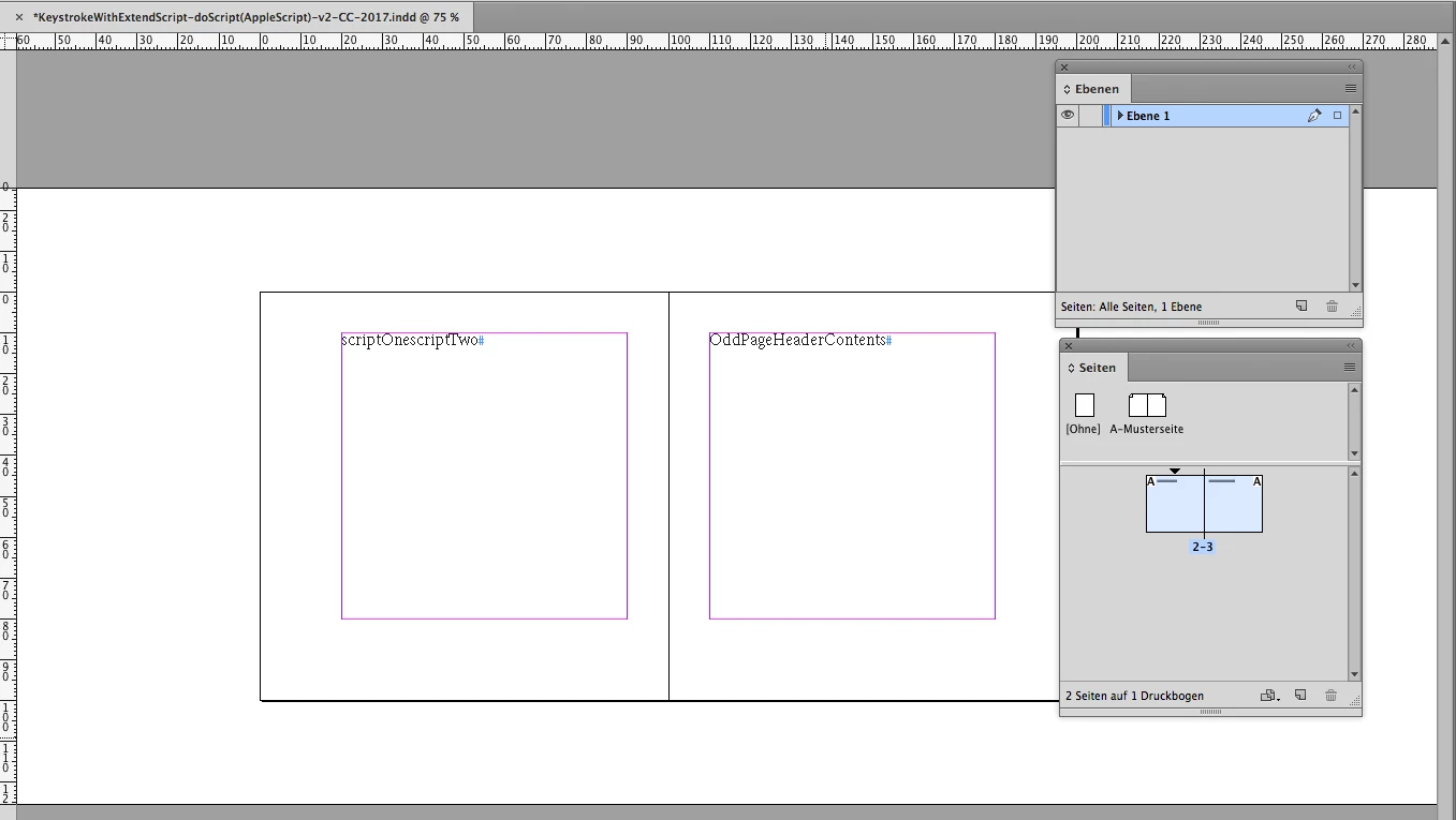 // Select the text within a frame labled "Odd Page Header" in the Layers Pallette, then run the Function