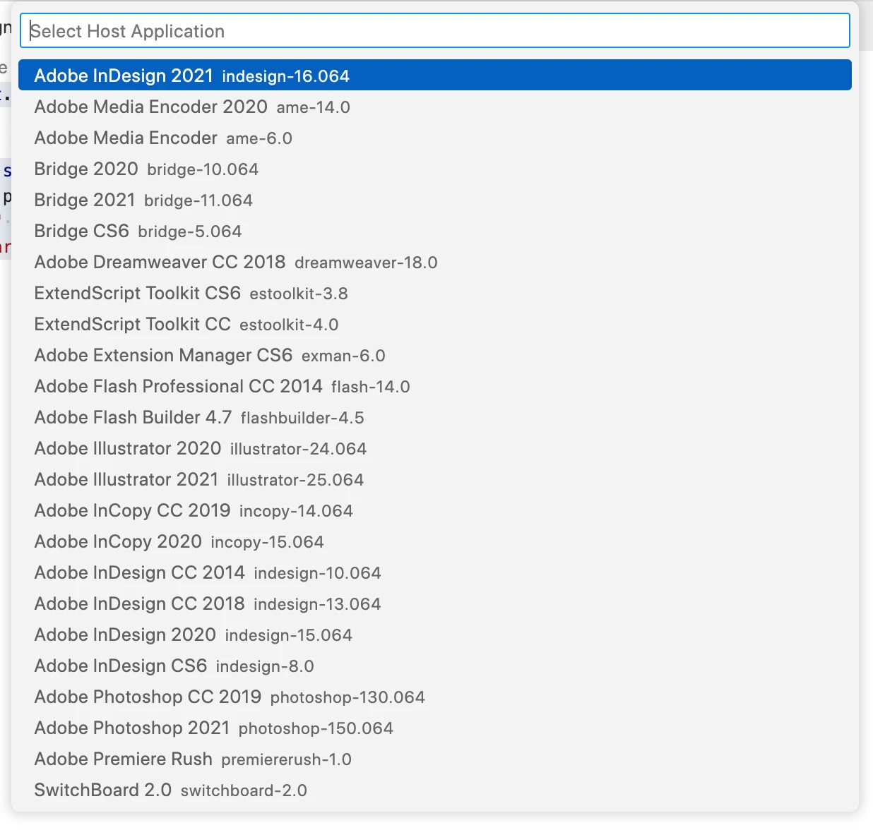 I would try reinstalling CC2020, but that’s no longer possible. Anyone know how VS Code gets the list of Adobe apps?